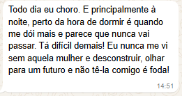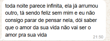 ATÉ CONSIGO COMER, MAS DURANTE A NOITE SÓ ME VEM PENSAMENTOS SOBRE ELA
